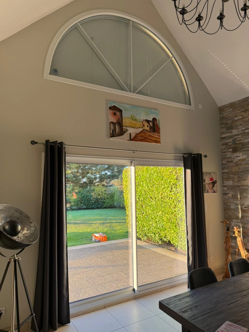 En effet, notre cliente a fait construire une fenêtre en forme de demi-lune, pour la création de son volet roulant, il a donc dû faire appel à un expert en menuiseries extérieures.