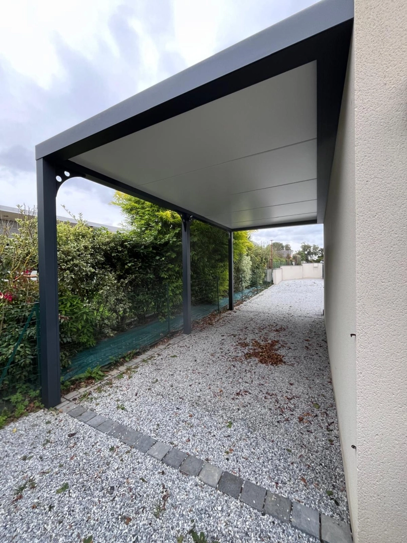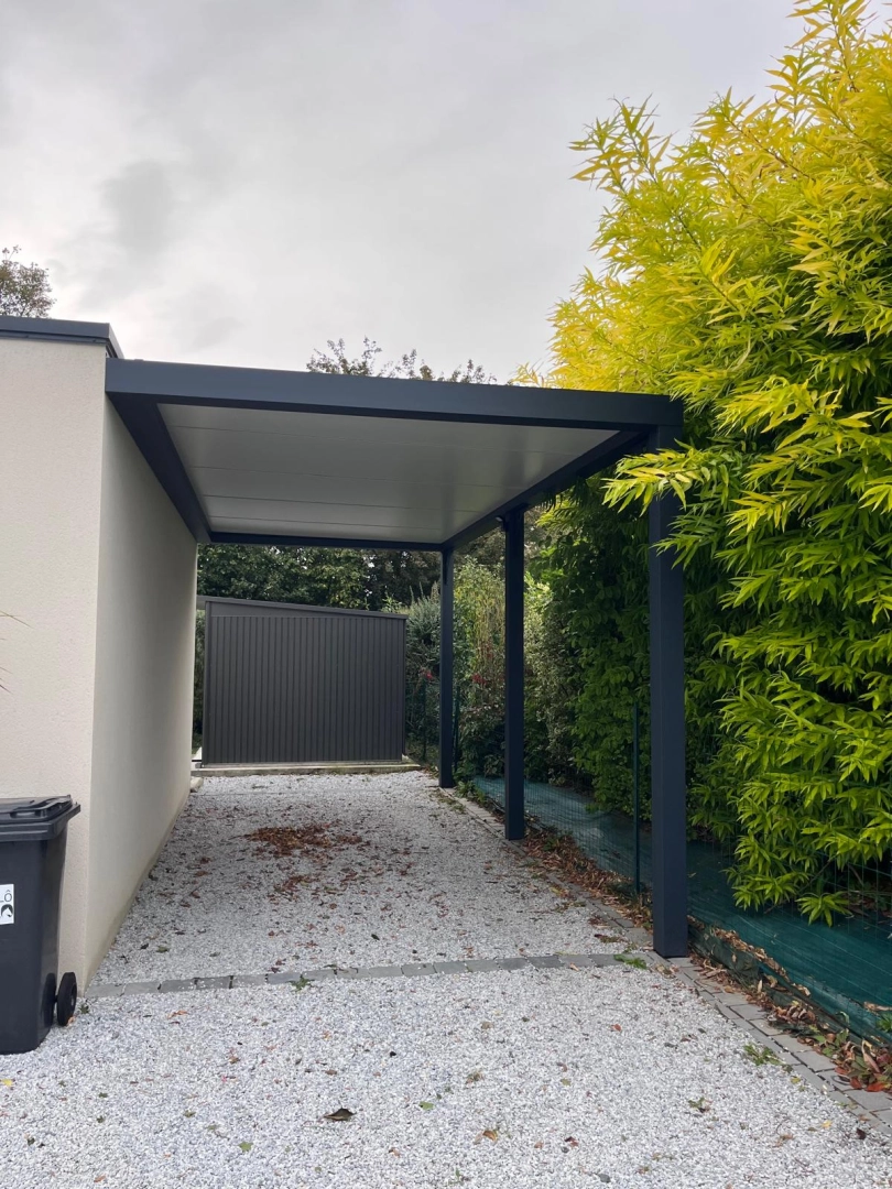 Notre client souhaitait protéger son véhicule des intempéries. Il a donc choisi un carport robuste de la marque Soko. Ce carport de 17m2 s’intègre naturellement à sa maison, de sorte à ce qu’il lui ajoute même une touche esthétique.