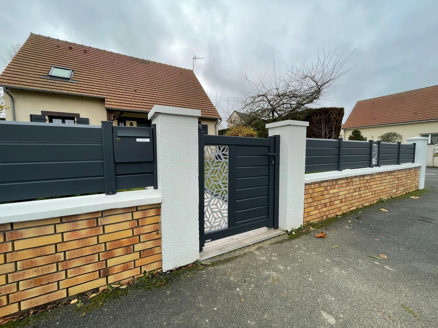Pensé comme un ensemble global, ce projet avait pour objectif de créer une entrée assortie, que ce soit dans les éléments de menuiserie ou par rapport à la maison. Le portail, d’une largeur d’environ 3,70 mètres, s’intègre naturellement à la clôture et au portillon assorti. L’ensemble crée une continuité visuelle harmonieuse, mettant en valeur la façade tout en délimitant clairement le terrain.